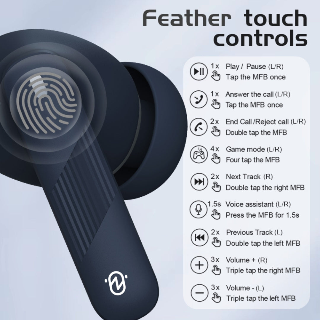 Zero Buds X2 Bass Boosted Earbuds - Navy Blue